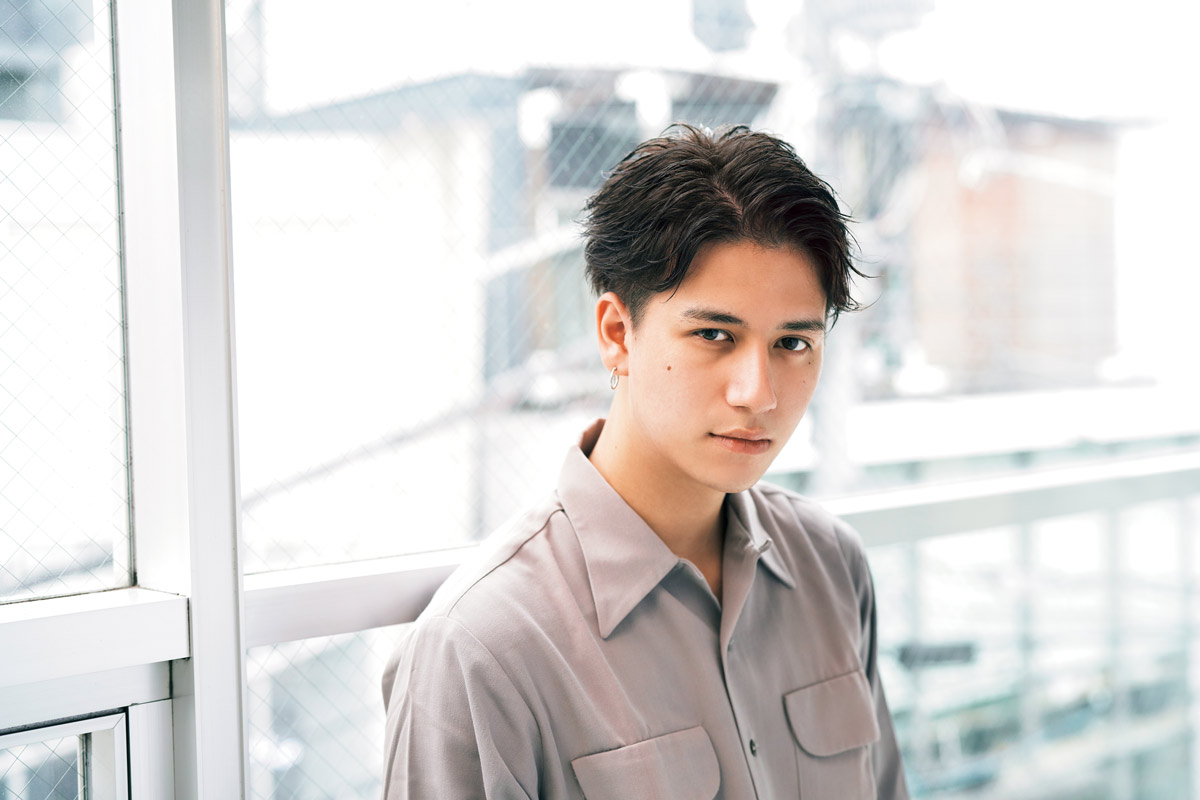 ベースは2ブロックのショートレイヤースタイル。スパイキーにはせず、パーマで丸みをプラスすることで大人の余裕漂うヘアに。ジェルでパリッと固めつつ、毛先にも遊びを演出した。担当/上原俊樹さん、モデル/斎藤聡太くん
