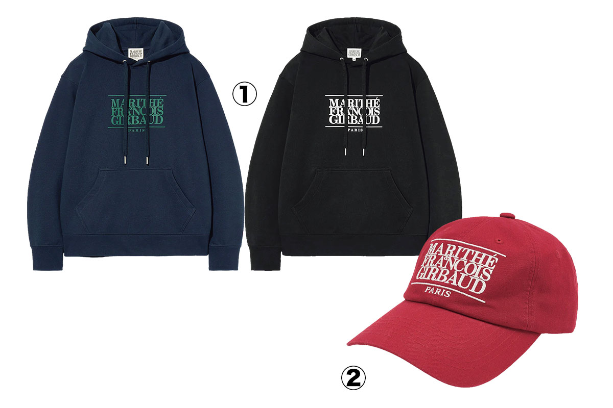 ②フーディと同じクラシックロゴシリーズからリリースされるキャップ。こちらも5色展開とあって、カラバリ買いもオススメ。前立てのロゴがコーデのアクセントに。6900円(すべてマリテ+フランソワ・ジ ルボー ルミネエスト新宿)