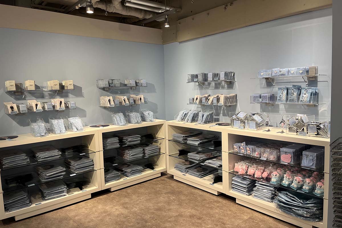 店内を入ると今回の公演のメンバーの肖像が並び、奥にはSEVENTEENのミュージックビデオが壁一面に映し出されるレイアウト。さらには、今回のポップアップストアのポイントとなるフォトスポットが……! SEVENTEENのOFFICIAL LIGHT STICKに着眼したキャラクターの"ボンボンイ"の今回のツアー商品である「LOCAL BONGBONGEE PLUSH KEYRING」が巨大になって壁面に登場!商品に連動して、公演の開催都市ごとに色が異なる仕様に。これは4都市のポップアップストア、全部まわらなきゃ??? ぜひ、会場に遊びに行ってみてください!