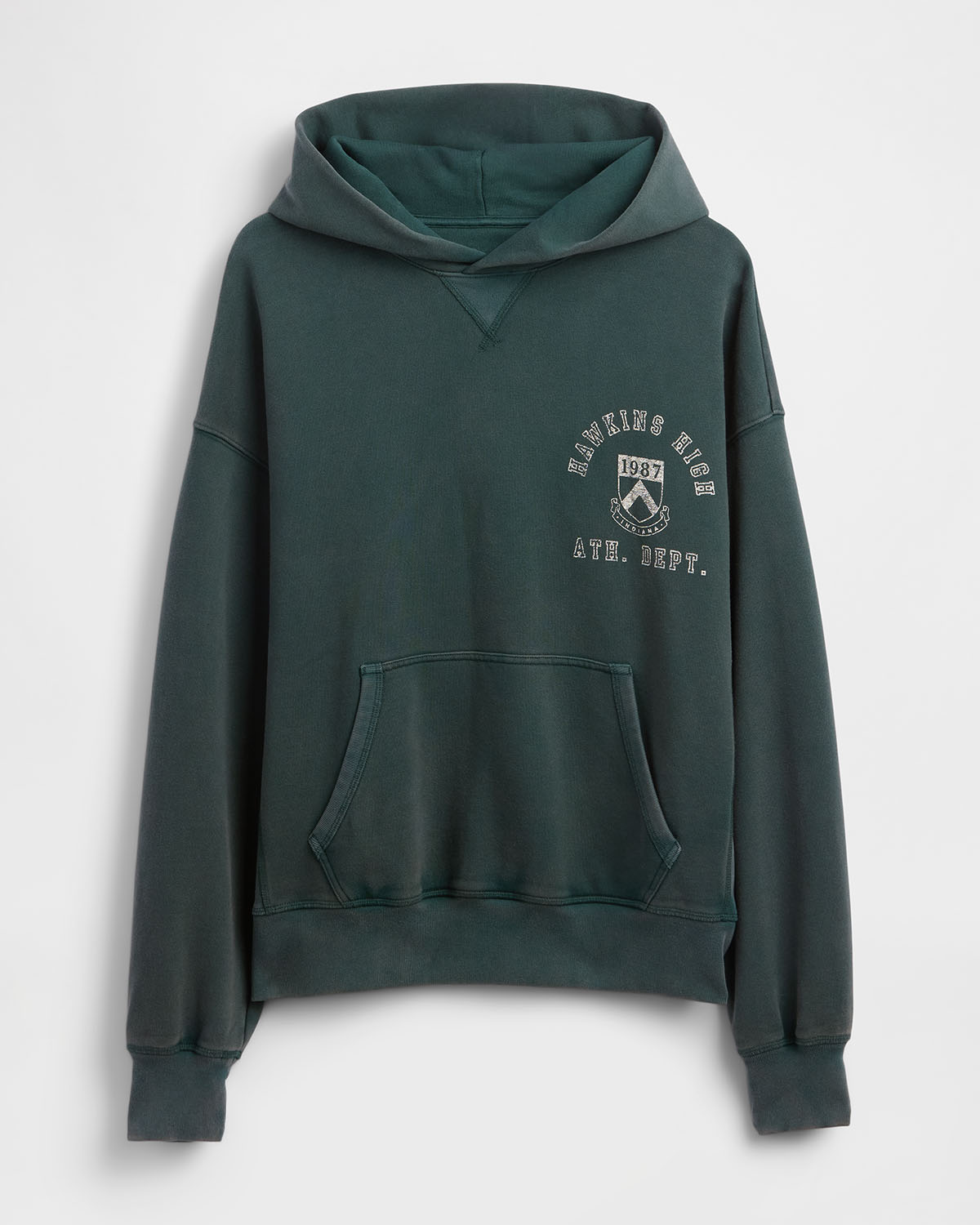 Gapを象徴するデザインの一つであるアーチロゴを「STRANGER THINGS」にしたヘビーウェイト素材のロゴフーディー。2万3900円