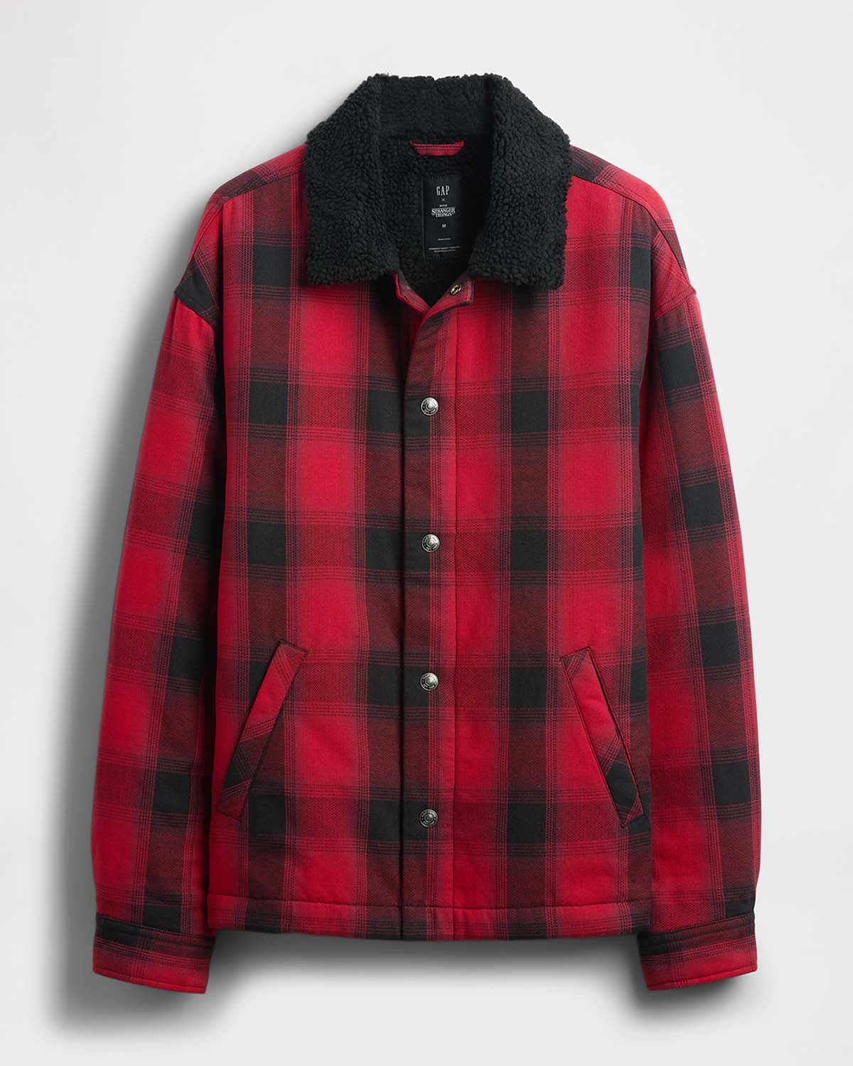 裏地がフランネル素材でレッドとブラックのバッファローチェックになったデニムジャケット。1万4990円