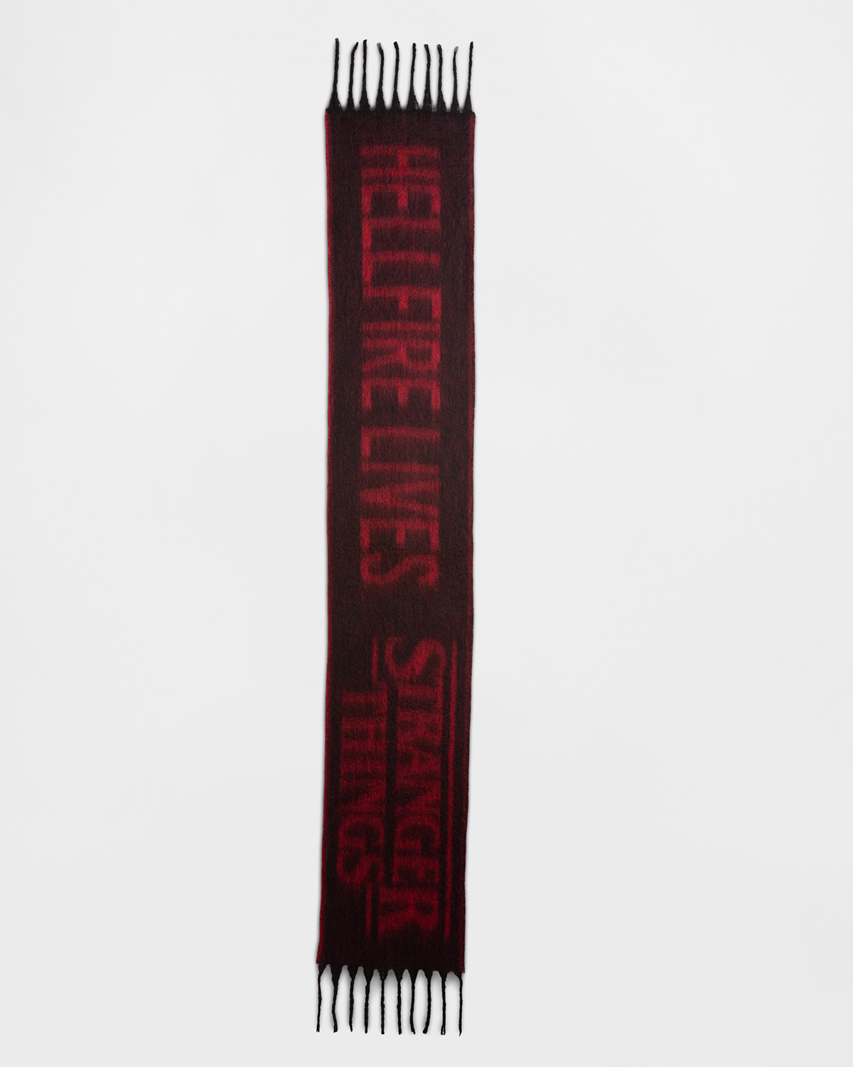 「STRANGER THINGS」のロゴと「HELL FIRE LIVES」が施されたマフラー。6990円