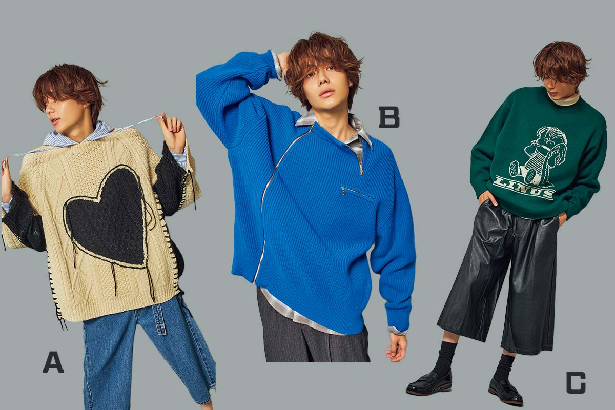 C かわいいキャラニットは首元に大人っぽさを仕込む