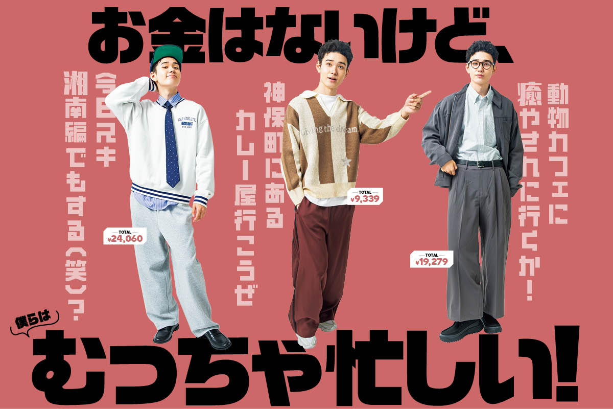 遊びすぎて財布の中は空っぽ。でも冬休みもあるし、予定が減るわけじゃない。「とりあえず行っとく?」で気づけば1カ月先まで予定はパンパン。でも全部全力で楽しみたいから、ここはコスパ最強の服で、この冬もおしゃれな俺で走り抜けてやるー!