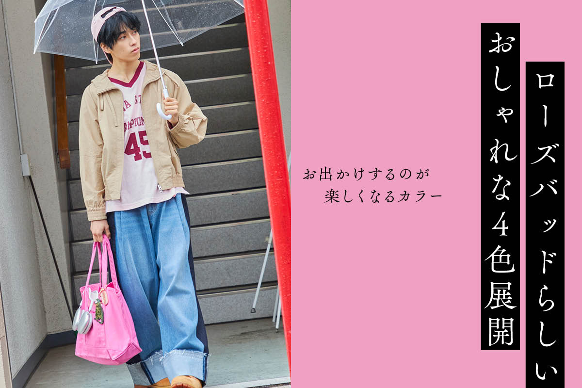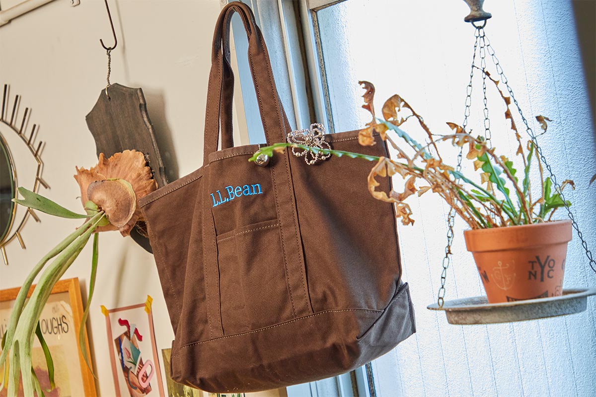 ずっと使えるタフさと、今っぽい抜け感。そのちょうど真ん中を突いてくるのが、ROSE BUD(ローズバッド)がL.L.Beanに別注したこのバッグ。人気の「グローサリー・トート」をベースにしていて、ボディに採用された11オンスのキャンバスは、ノートPCも気にせず放り込める頼もしさ。それでいて薄手だから、くるっとたためばサブバッグにもなる軽やかさがいい。ブラウン、ピンク、グリーン、ライトブルーの4色は、ボディとロゴ刺繍の配色を遊んだ2トーン仕様。誰かとオソロイで持っても絶対楽しい! 肩掛けしやすいハンドルや混雑した電車でも邪魔にならない横幅のサイズ感、スマホがすぐ取り出せる外ポケットなどなど……、使う人の一日をちゃんと考えて各ディテールをアップデート。僕たちの日常にちょうどいい、気の利いたトートなんだよね。