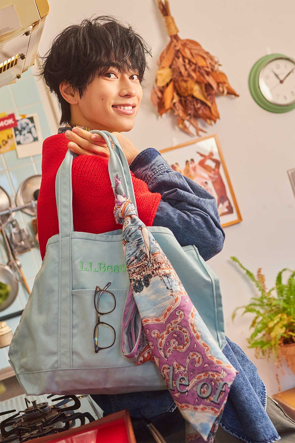 おっと、遅れる、遅れる! 待ち合わせまであと30分。俳優・本島純政が今日もL.L.Beanのバッグと一緒にお出かけ。最近、買い物するぞーってときはL.L.Beanがちょうどいいんだよね。特別感のあるカラーのバッグは、キーホルダーやスカーフでデコるともっと楽しい。荷物だけじゃなくて、今のテンションごと詰め込める感じ! バッグひとつで気分が上がると、待ち合わせもいつもよりワクワクするよね。