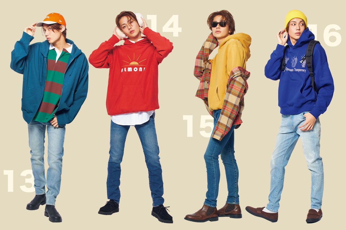 色パーカを楽しむって、ちょっと勇気がいる。派手すぎ?子どもっぽい?浮いてない?って思っちゃうから。そんなときこそ、デニムと組み合わせれば安心! 普段から着慣れてるボトムズが土台だと、トップスも挑戦の幅も広げられる。色パーカはデニムと合わせれば、俺でも着こなせるかも⁉︎
