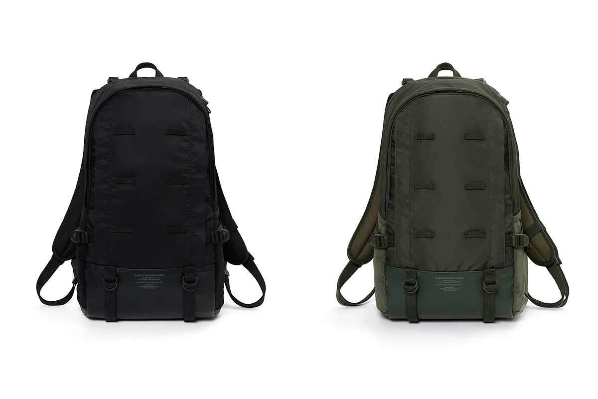 今回は、何度も試行錯誤した上で出来上がった、バックパック、デイパック、さらに大小のメッセンジャーバッグに2WAYトートバッグの全5型を展開。またMONOCHROMEという名が語るように、オールカーキ、オールブラックの2種のワントーンカラーに!