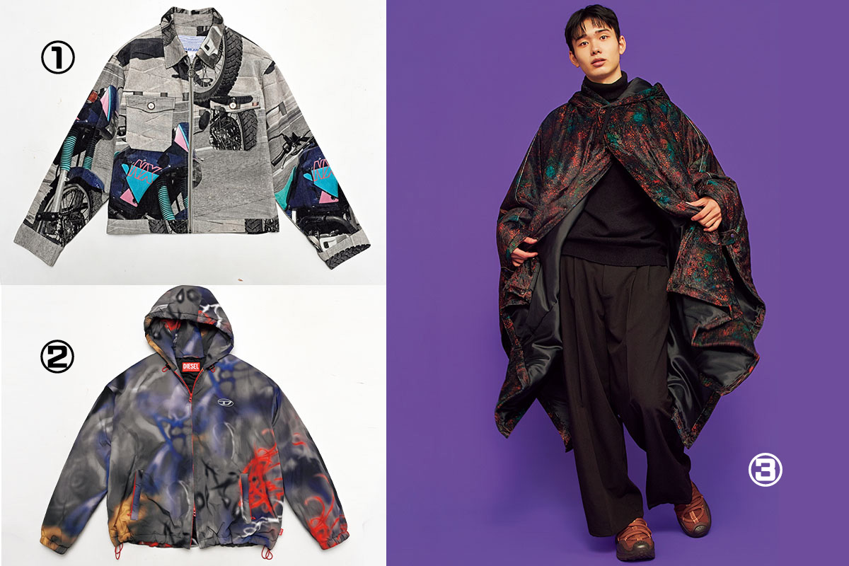 チェック柄とかストライプ柄の定番柄とは違う、「なにそれ⁉︎」って言われるくらいのインパクトがある柄がいい。インナーがシンプルでも、はおるだけで雰囲気が完成するような、アウター求む!