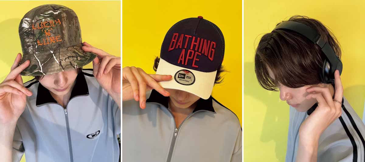 カモ柄のバケハをかぶれば、コーデが一気に上級者っぽくなる! ラッキールアーのハット5500円(アドナスト)