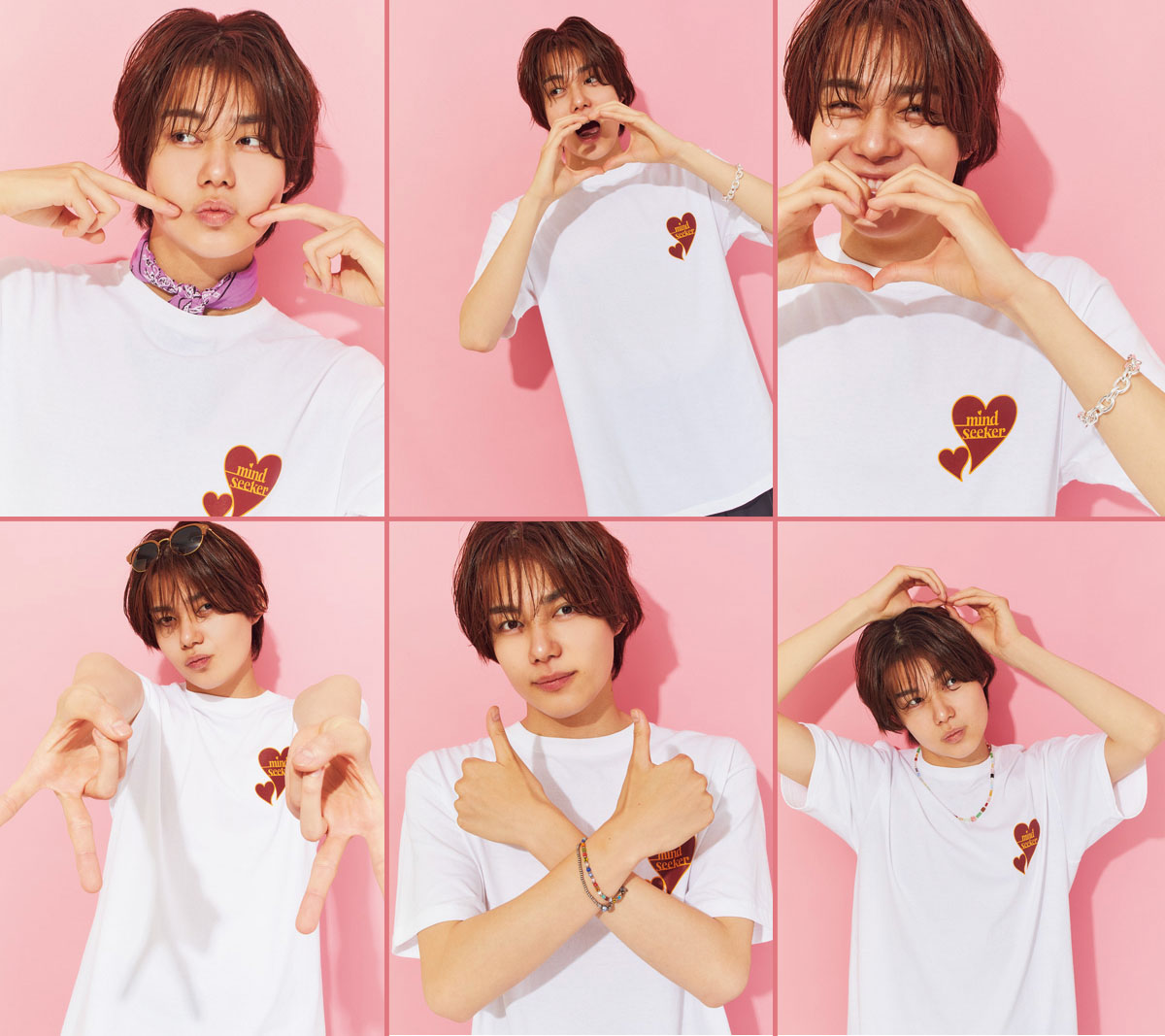 マインドシーカーのT シャツ1万6500円(ジョワイユ)、バンダナ990円(GU)