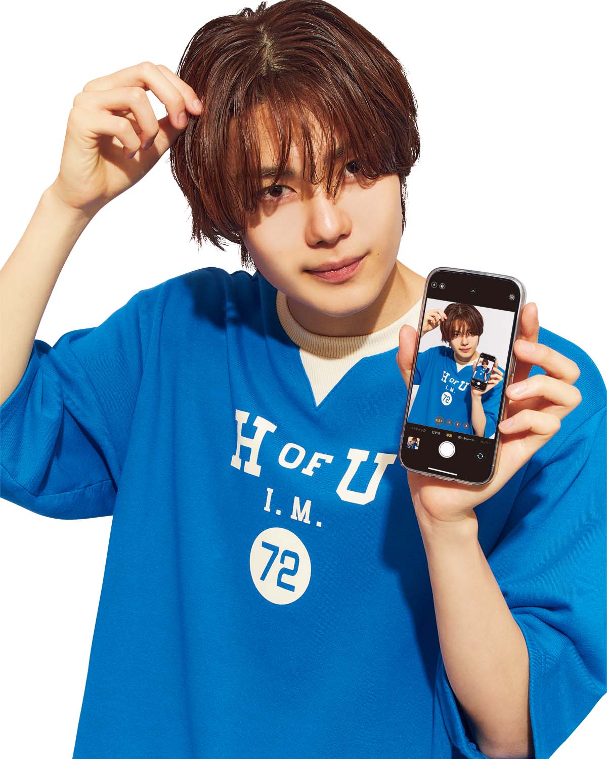 ポーズに迷ったら、アイドルから学べ!〝バズりポーズ 〞は、真似するだけで今っぽくキマる。なかでも注⽬はIVEのレイちゃん。SNSにアップしてるポーズは、全部かわいい! ちなみに、アイドルにも⼈気のアプリ「BeautyCam」の「iPhone カメラモード」で撮ると、無加工感を残しつつ、ナチュラルに盛れるから男子でもぜひ!