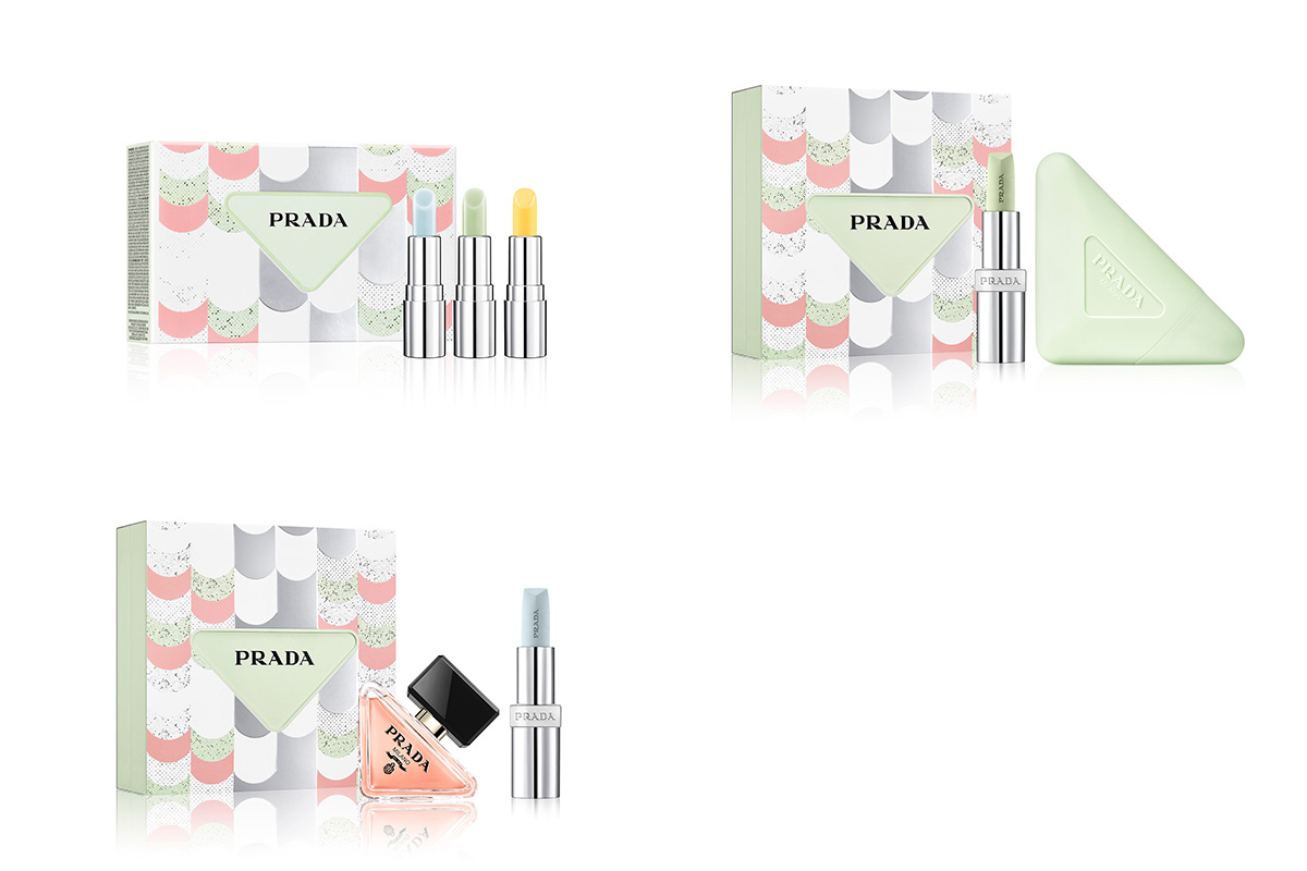 アイコニックな「ブルーバーム」と「グリーンバーム」に、昨年発売した「バナナ バーム」をくわえた3種のバームを試せるミニサイズのセットが登場。「プラダ ハンド」と「グリーン バーム」のセットはブランドを象徴する組み合わせでジェンダレスなギフトにもぴったり。また、プラダのアイコン製品である「ブルーバーム」と「プラダ パラドックス」の組み合わせは、プラダが誇るアイコン・デュオ、とっておきのアイコンセット。