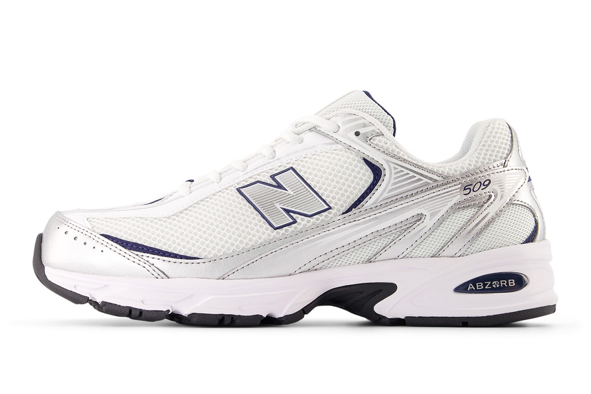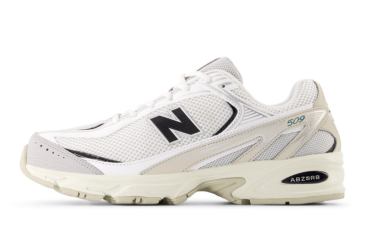 上記のモデルの色違い。メタリックのアクセントを入れつつも、モノトーンを基調としたカラーリング。スポーティな顔つきはそのままに、大人っぽい足元を演出してくれる。[U509CC/U509CD/U509CA]各1万3970円