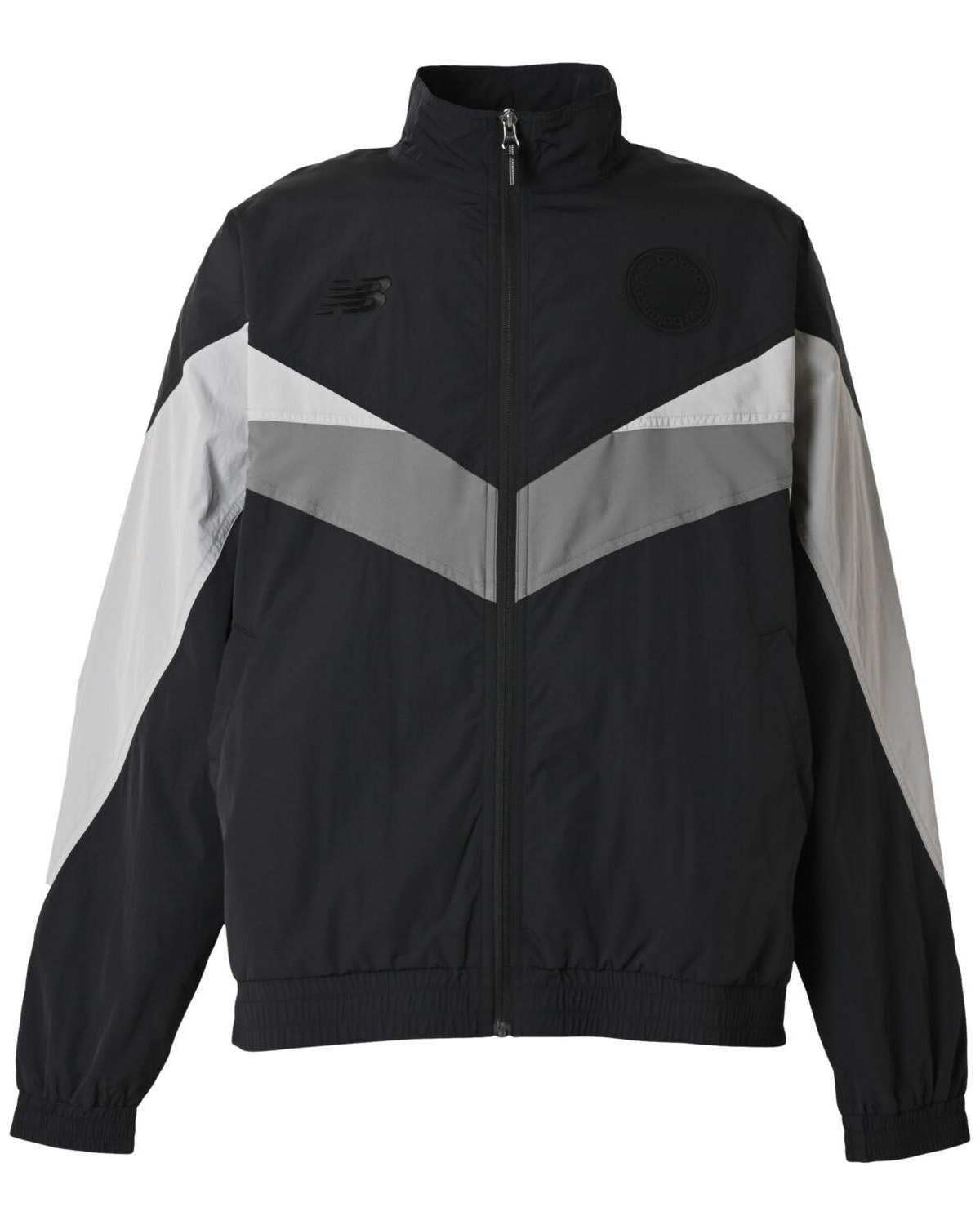 こちらも1990年代のフットボールシーンに着想を得た”ブラックアウト”コレクションの1枚。ブロックカラーの切り替えが特徴的なウィンドジャケットで、モダンな街着としても使いやすい。右胸にNBロゴ、左胸にサークルワッペン、フルジップファスナーにリフレクトテープを配置。機能性も高く、裏メッシュ付きのシボ感あるナイロン素材と、メカニカルストレッチ素材を使用し、風を防ぎながらも通気性と動きやすさを両立する。[M ウインドジャケット] 1万7930円
