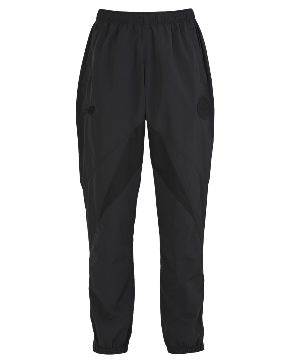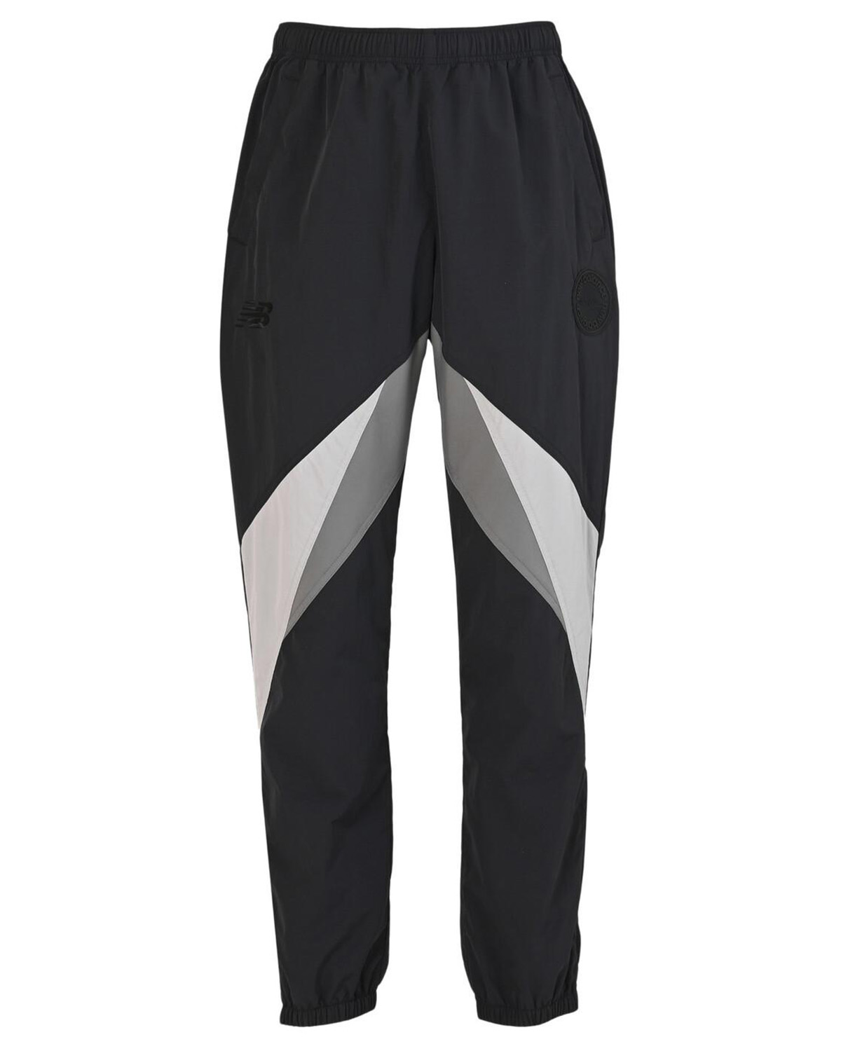 裏メッシュ付きのシボ感のあるナイロン素材を使用し、風を防ぎながらも通気性は確保。右モモにはNBロゴ、左モモにはサークルワッペン、シューズを履いたままでも脱ぎはきしやすいファスナーが裾につく。何にでも合う真っ黒と、ブロックカラーを落とし込んだデザインもあり。[M ウインドパンツ] 1万3970円