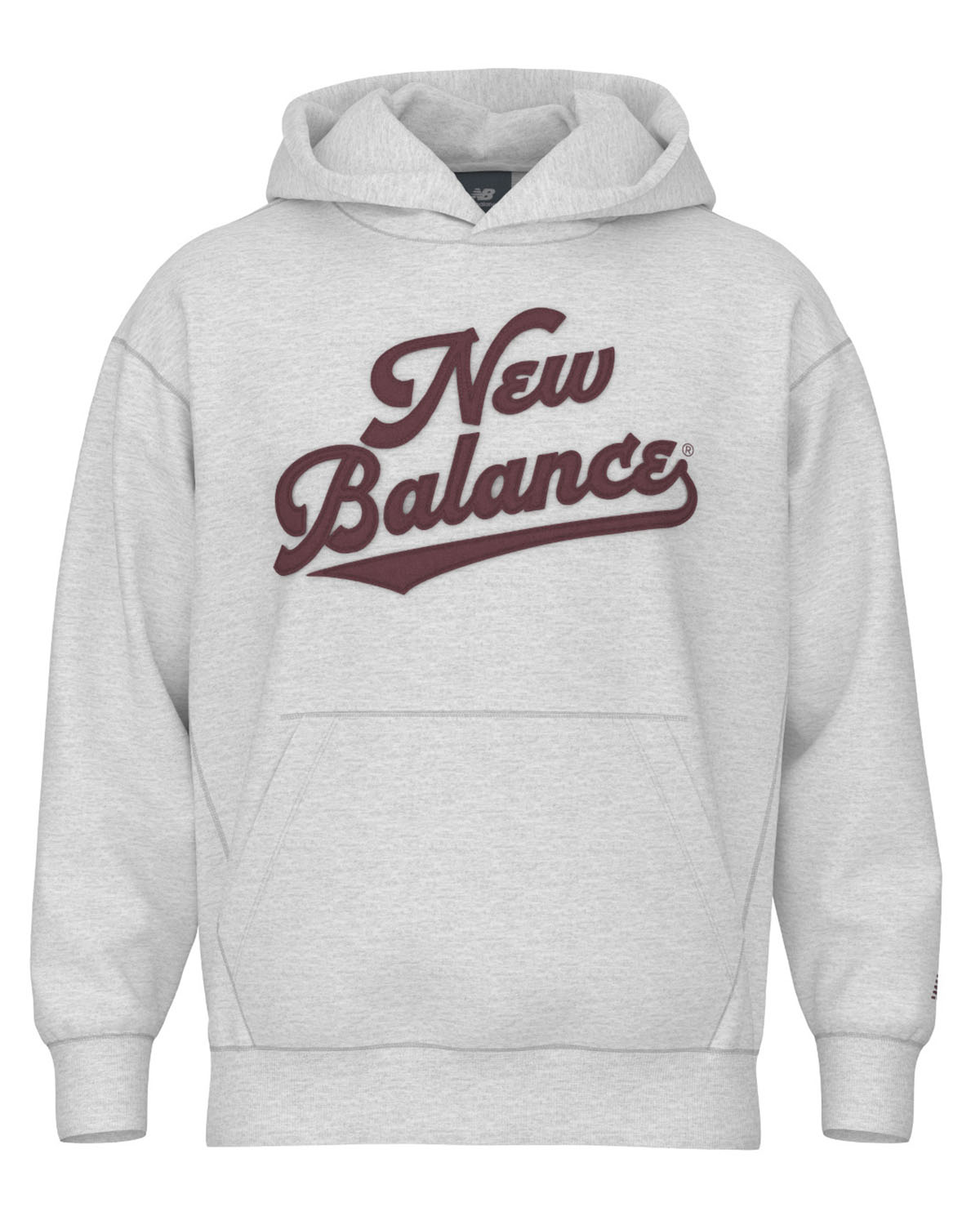 こちらも290gのフレンチテリーを使用した柔らかいコットンフリースの素材パーカ。アメリカンなグラフィックでブランドロゴを表現。ラフなアイテムながら、ヘリテージ感が大人の渋さを漂わせる。[M Athletics レガシーフーディ] 1万1990円