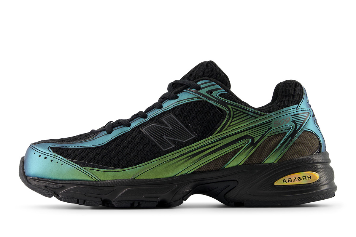 2000年代のランニングシューズをベースにしたこのモデル。メッシュとレザーの今どきな異素材コンビのアッパーで、さらにメタリックのグラデーションを配す。これを履けば、足元にフューチャー感が漂い、トレンド感満点のスタイルに早変わり![U509AA]1万5950円