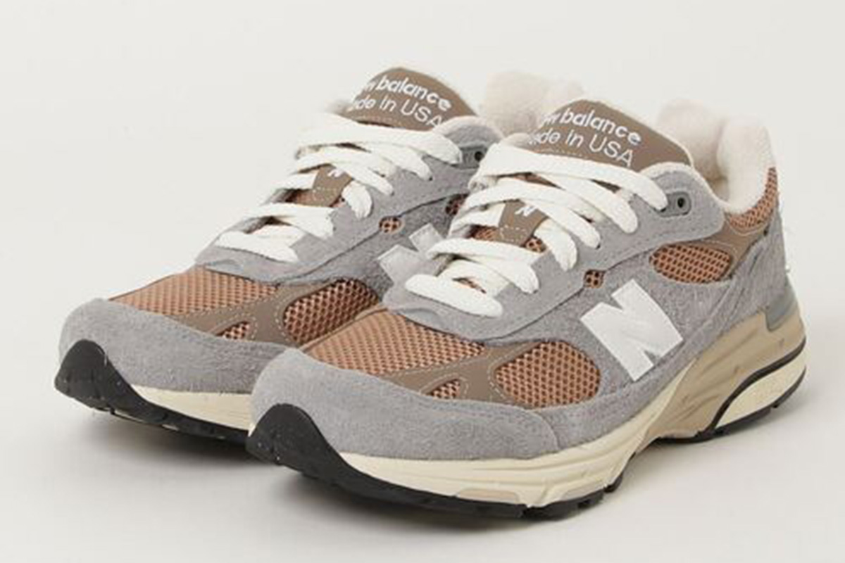MADE in USA Fall/Winter Collectionから登場したこのモデル。自然をイメージしたカラーリングは日常の定番スタイルに取り入れやすい。グレーの濃淡とニュートラルカラーのコントラストが織りなす立体感あるカラーリングは、今の時季にぴったりだ。ニューバランスのシューズ4万1800円