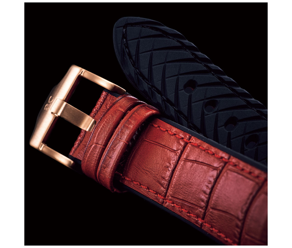 ダイヤルと色リンクして全体のまとまりを強調するベルトは、レザーにシリコンを圧着し汗水に強い仕様に。実用性も加味されている時計界に一大ブームを巻き起こしたラグスポ。その概念が誕生したのは、クォーツショックにより腕時計がカジュアル化を果たした一方、機械式時計はまだまだ装飾品として扱われていた、1970年代のこと。ドレス=高級感とスポーツ=実用性を同時に満たす腕時計は、そんな背景から今なお雲上ブランドやハイメゾンがずらりと並ぶ。ところが近年では、デザインジャンルのひとつとして親しまれることも多く、そんな観点で今季新作を拝見すると、ひときわ輝く新作が。〈エンジェルクローバー〉タイムクラフト ジャパンメイドは、軽さと剛性に富んだカーボンをベゼルに採用。加えて舷窓を思わせるビス留めで、リッチな印象を演出している。またベルトはレザーに汗水に強いシリコンを圧着させるなど、ラグスポ然とした面構えに機能性も十分。多くの賛同を得て、見事受賞となった。